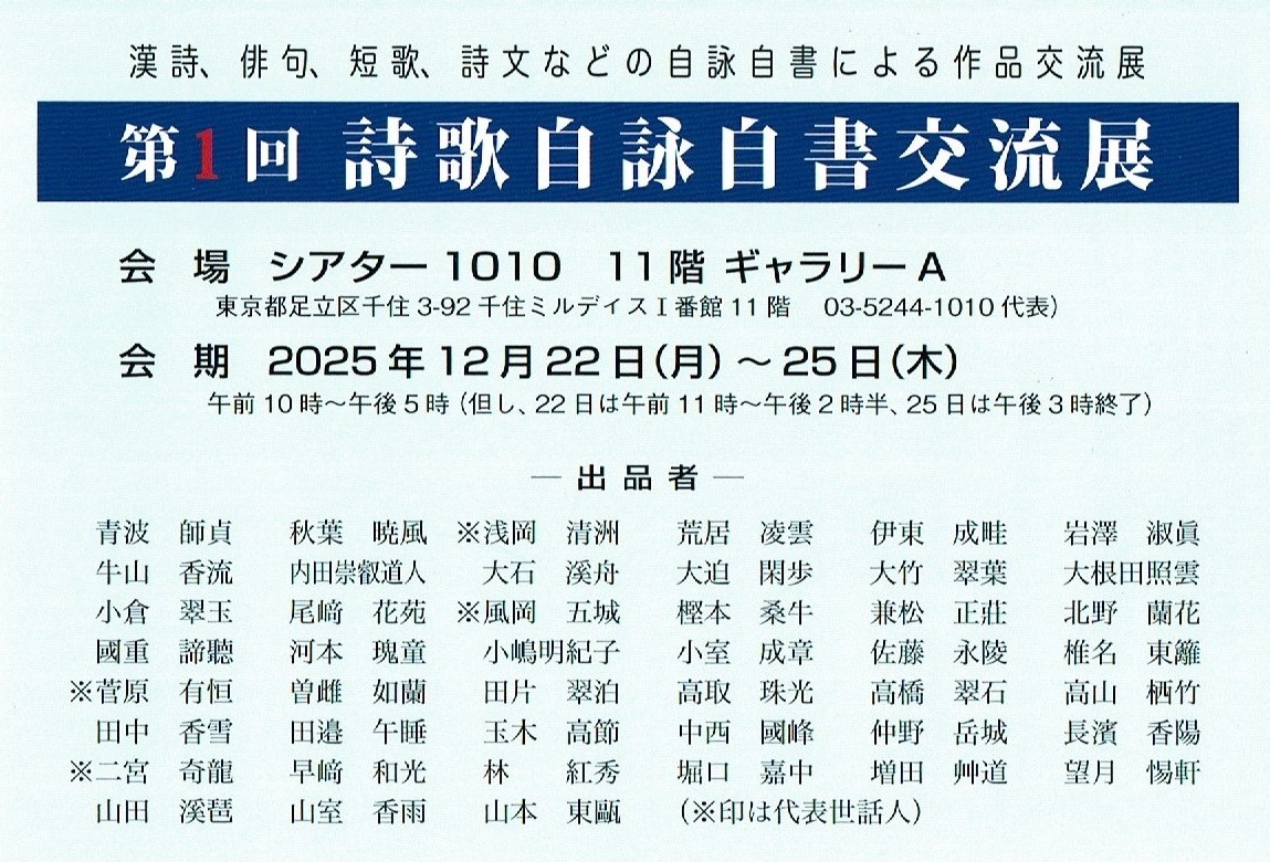 < 全日本漢詩連盟設立二十周年記念 令和漢詩人展 >